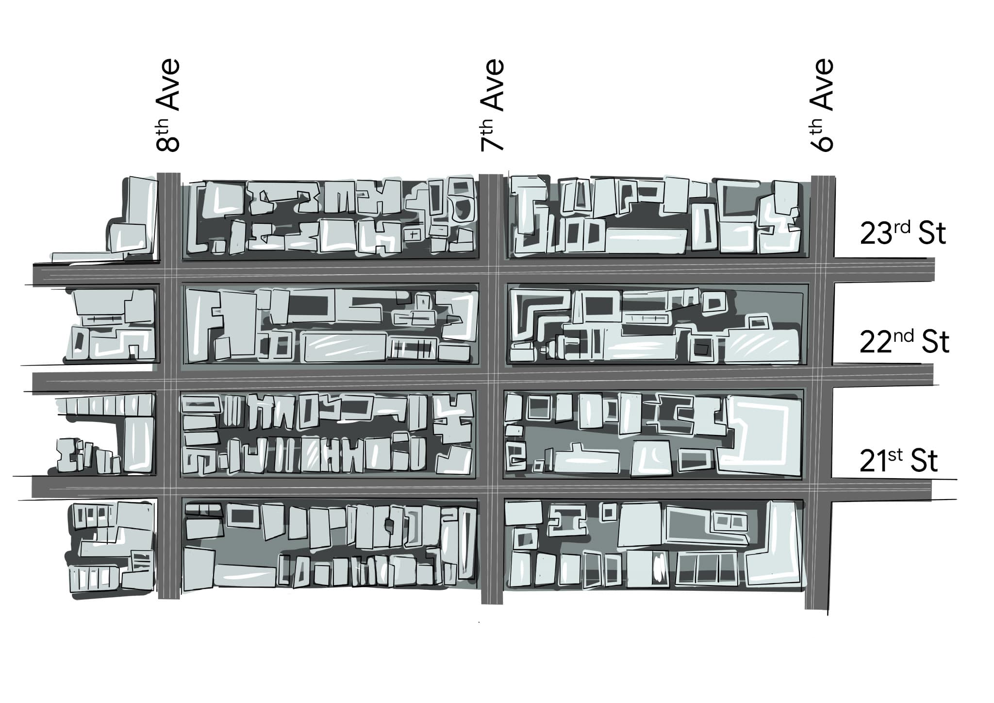 This grid system is not perfect. For instance, 4th Ave is named Park Ave for most of its stretch and the grid system does not really exist below 14th St for historical reasons. The rectangular area that streets and avenues create in between are referred to as blocks and are also often used as a colloquial measure of distance. You might hear "the subway station is two blocks east" or "I have to walk three blocks to get to work". Because blocks are rectangular in shape, blocks can be "short blocks" (if you walk north-south along an avenue) or "long blocks" (if you walk east-west along a street). Long blocks are also referred to as crosstown blocks. It takes about 1 minute to walk a short block or 3-4 minutes to walk a long block. Keep this concept in mind as it will help you find subway stations and navigate maps.