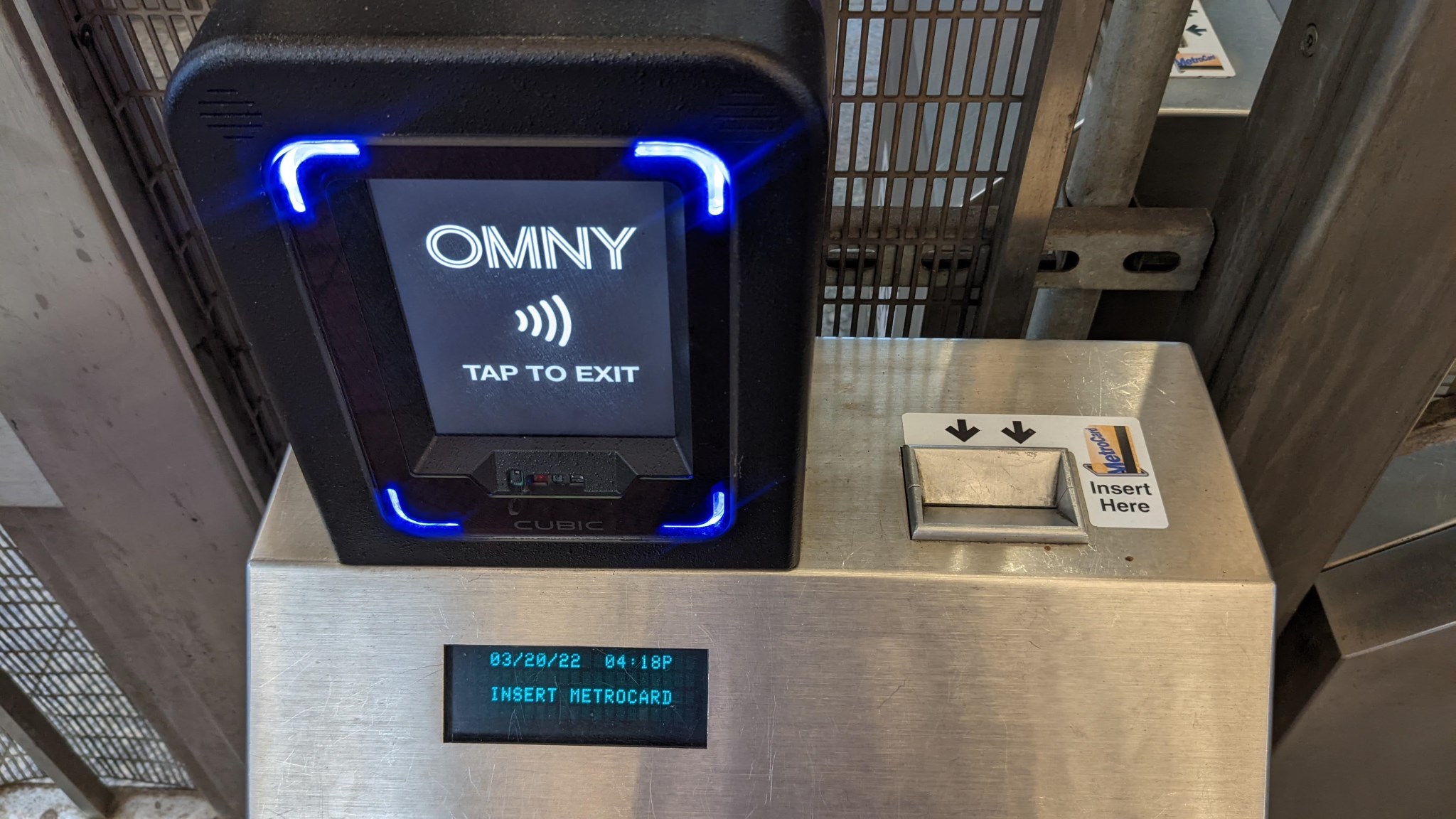 Now, either swipe your OMNY device against the OMNY reader or dip your MetroCard into the slot at the top of the AutoGate (you will get it back). The door will then automatically open and will remain open for a few seconds for you to go through effortlessly.