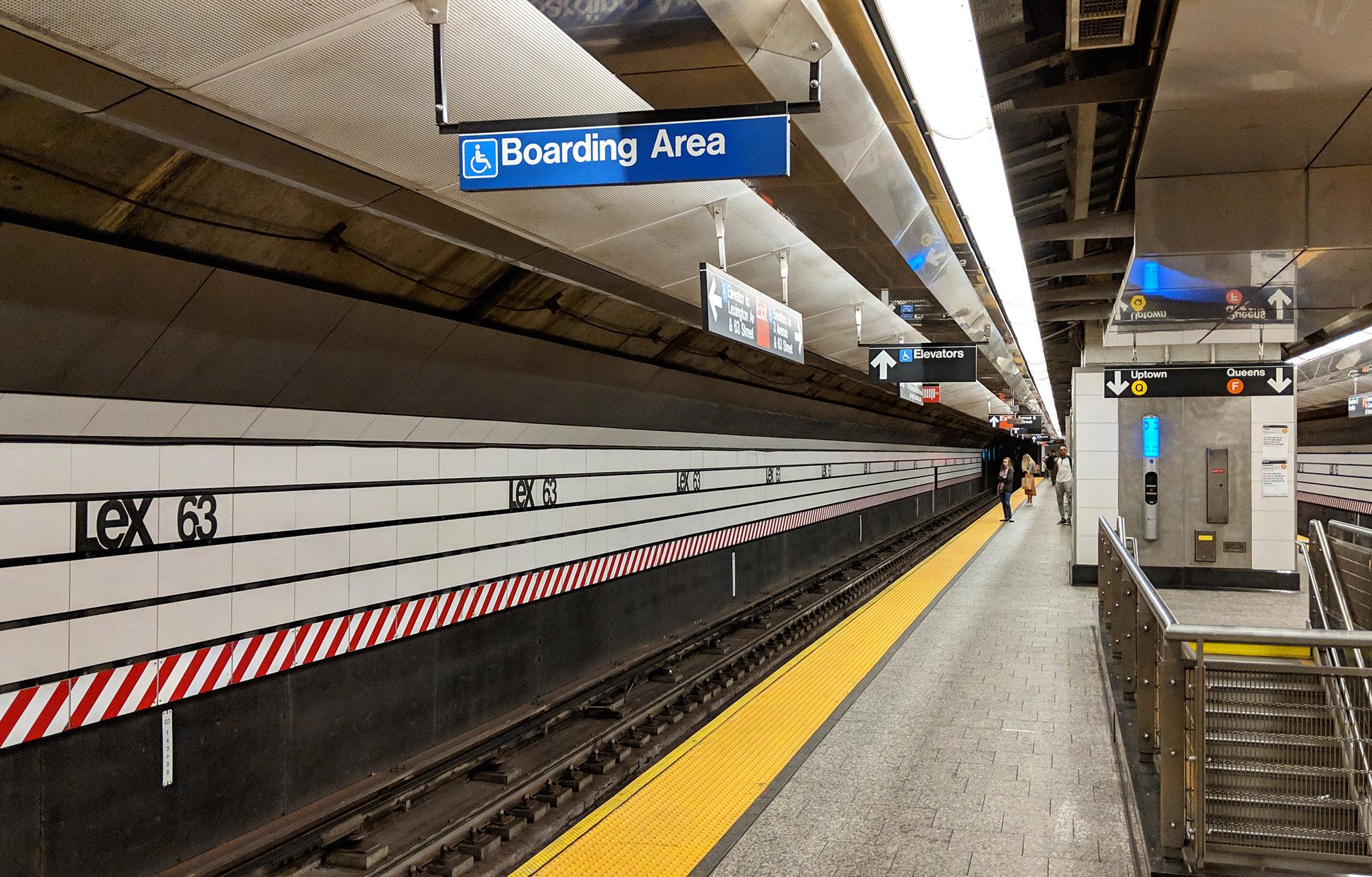 Before entering the elevator, make sure to read the signage above it to verify that this will get you to the desired train and direction. For instance, some elevators only take you to the downtown service, so you have to find another elevator if you want to head uptown: