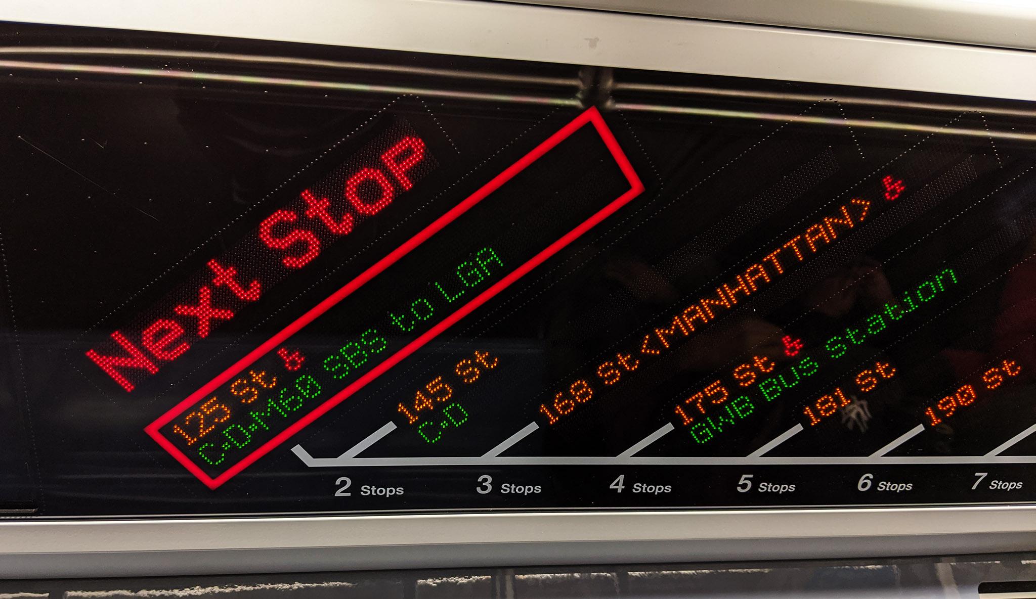 As one would expect, taking the trip using elevators or only accessible stations will take a significant amount of time. It’s very typical that your entire journey might require 4-6 different elevators. For more details and resources about accessibility see the MTA’s website on this topic.